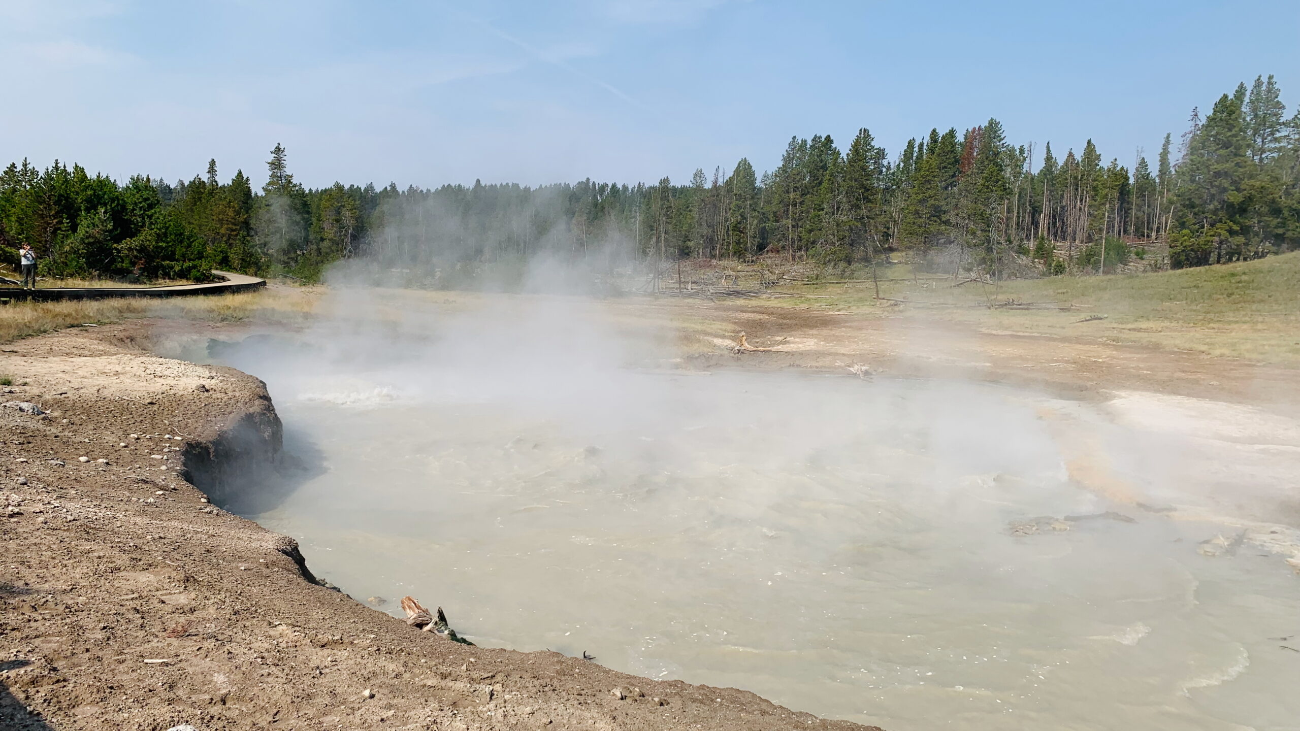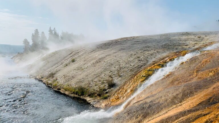- Lower Geyser Basin Trail: An easy walk through a large geothermal area with bubbling mud pots, steaming vents, and random eruptions. Less crowded than Old Faithful but still active. We ventured here early in the morning which offered a uniquely steamy/foggy view of the area.
