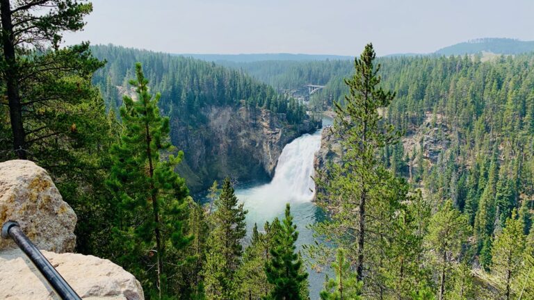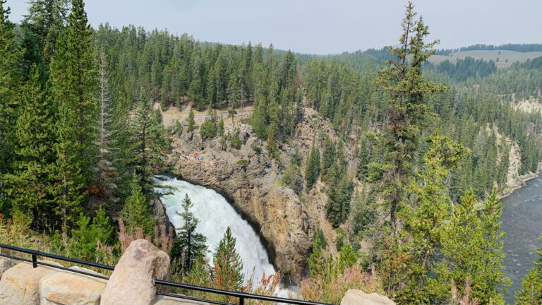 - Lower Falls Overlook: These falls are massive. The Lower Falls features 308-foot waterfall in what’s known as the “Grand Canyon of Yellowstone.” There are multiple viewpoints, but this one gives you that classic head-on shot. We stopped here for lunch and enjoyed the distant sound of the falls.