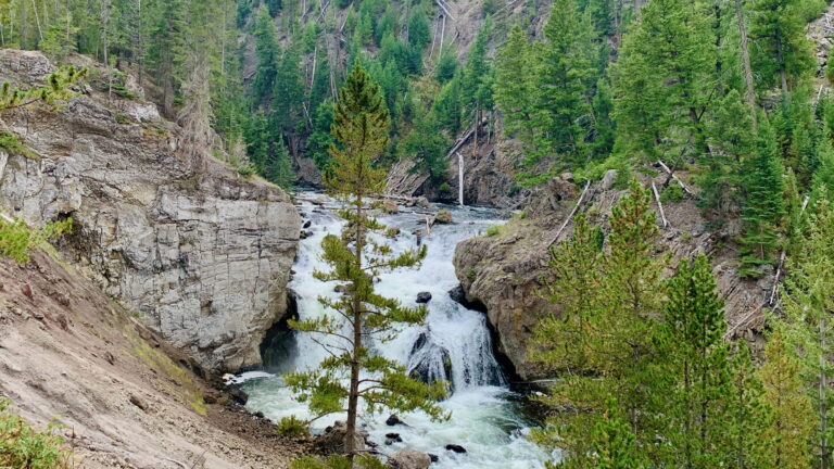 - Gibbon Falls Trail: A short, paved trail along the Gibbon River with a great view of the 84-foot waterfall. Easy access, decent photo op, and a nice spot to stretch your legs between bigger stops. We didn’t stay very long, but it was an inspiring point to witness the power of water.
